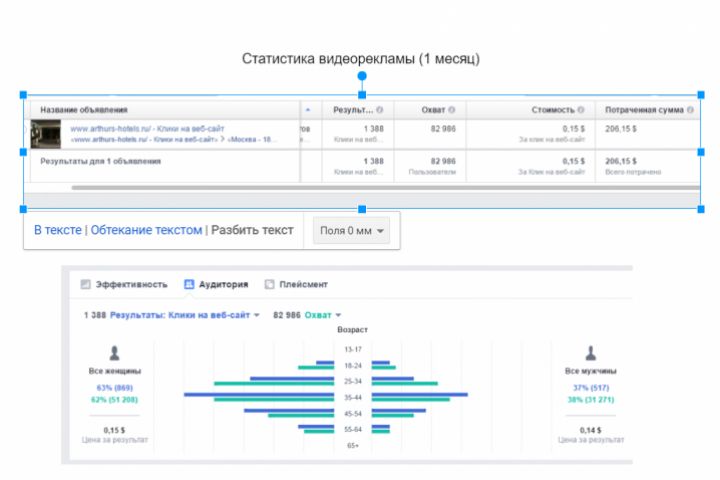 Задача рекламной кампании - переходы на акк отеля в инстаграм. Основная целевая аудитория - жители Москвы и Подмосковья (северное направление) от 18 до 64 лет. В первый месяц запускали видеоролик в ленте инстаграмм. Бюджет 12000руб, потрачено 12 021руб.