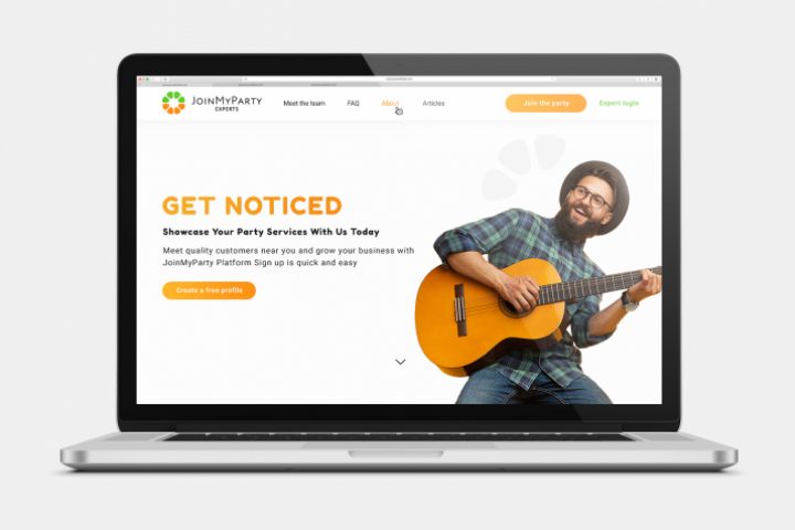 Главная страница сайта предоставляет всю важную информацию для потенциальных специалистов на сервисе JoinMyParty.