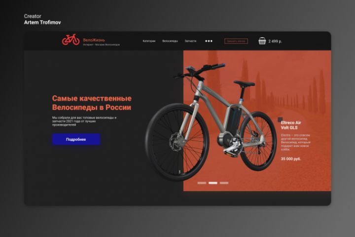 Дизайн lending для интернет-магазина велосипедов Нагруженность сайта контентом высокая. (Большое количество блоков и карточек товара) Шрифт: Roboto Тема: Красная Количество блоков: 6
