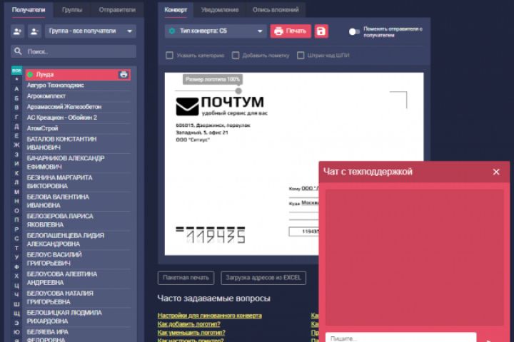 Формирование почтовых бланков (конверты, уведомления, описи, реестры) средствами Javascript.