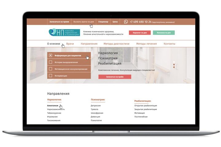 Корпоративный сайт "под ключ" для Клиники наркологии и психиатрии.