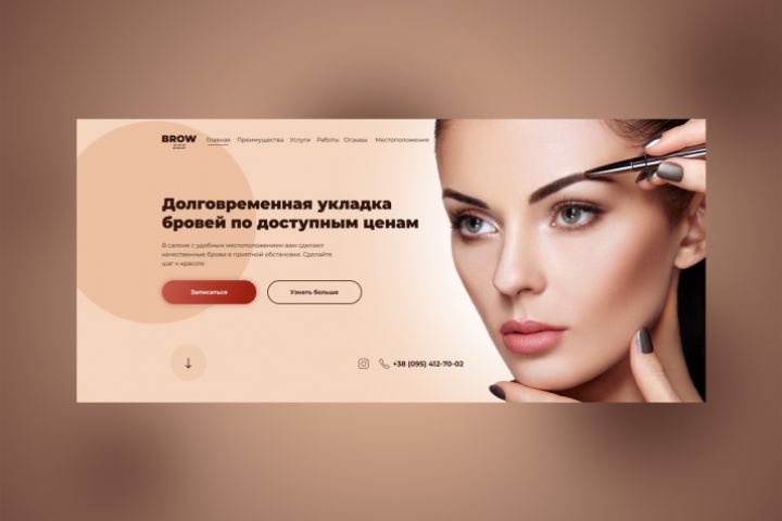 Дизайн лендинга выполнен для бровного мастера. Акцент сделан на нюдовые тона, что подчеркивает элегантность данной темы.