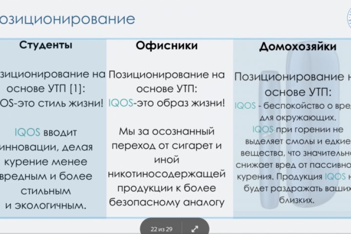 В данной работе представлено определение и анализ ЦА, позиционирование, а также стратегии для выделенных сегментов.