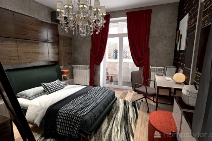 Интерьер спальни в стиле лофт(балкон)