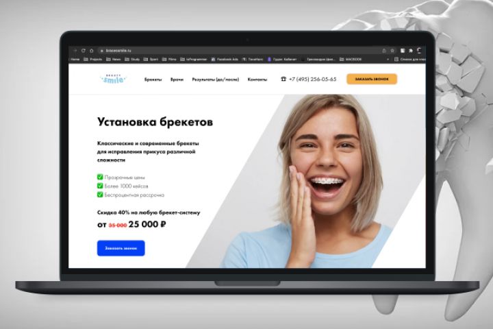 Сайт для стоматологической клиники на услугу "Установка брекет-систем" разработан на Tilda.