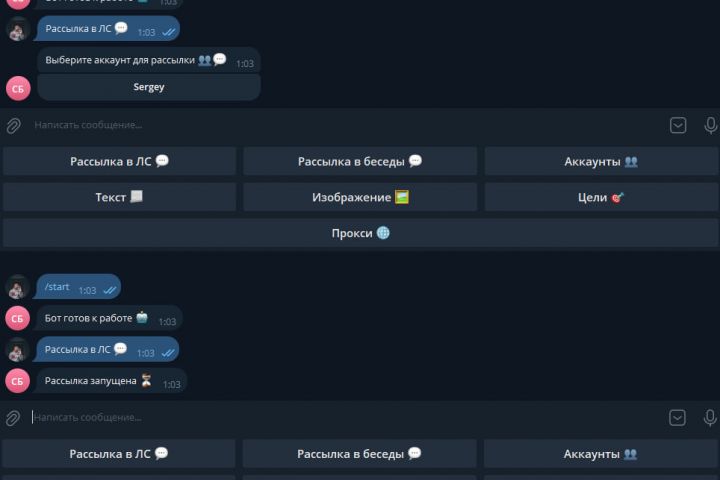 Разработал приватного Telegram-бота в связке с Telegram-клиентом для массовой рассылки сообщений