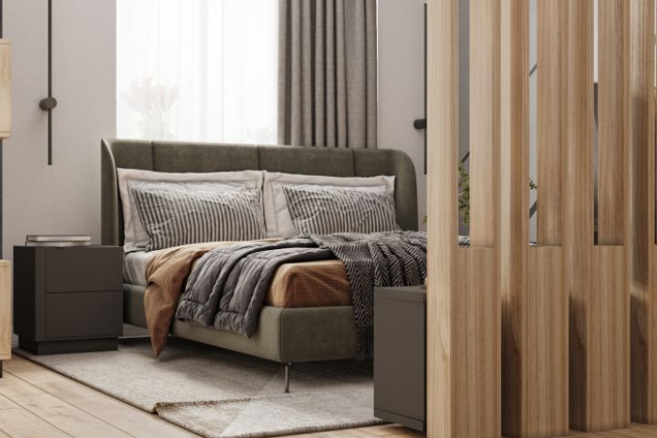 Визуализация разработана для спальни в стиле лофт с ограждающими конструкциями