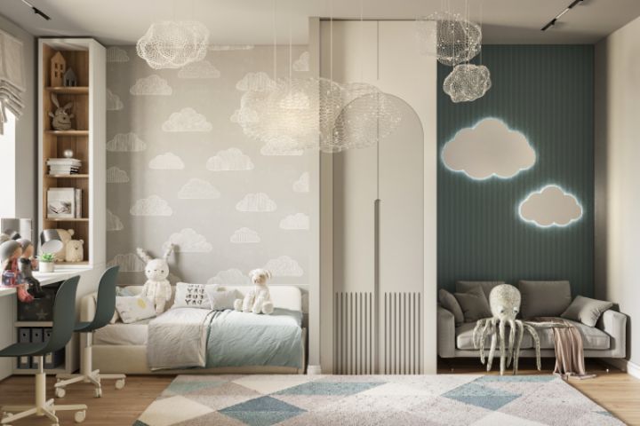 Визуализация детской комнаты была разработана для мальчика с девочкой пяти лет