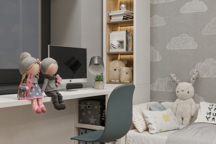Визуализация детской комнаты была разработана для мальчика с девочкой пяти лет