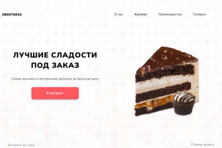 Яркий и завлекающий своей сладостью лендинг для сайта-магазина, который увеличит ваши продажи в несколько раз и завлекёт новых клиентов.