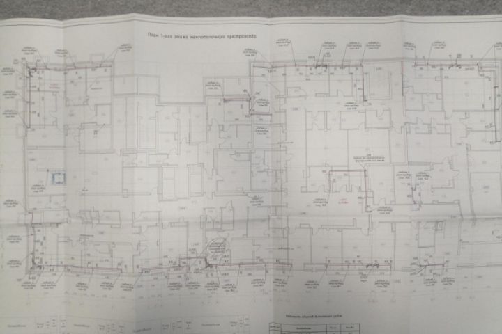 Водоснабжение, канализация, отопление в помещении 1500м2, с подробным обозначением заборной арматуры, сантехническими приборами.