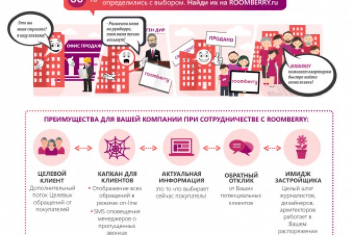 Коммерческое предложении для портала недвижимости. Цель: максимально наглядно, но в сдержанной форме выделить преимущества портала для размещения.