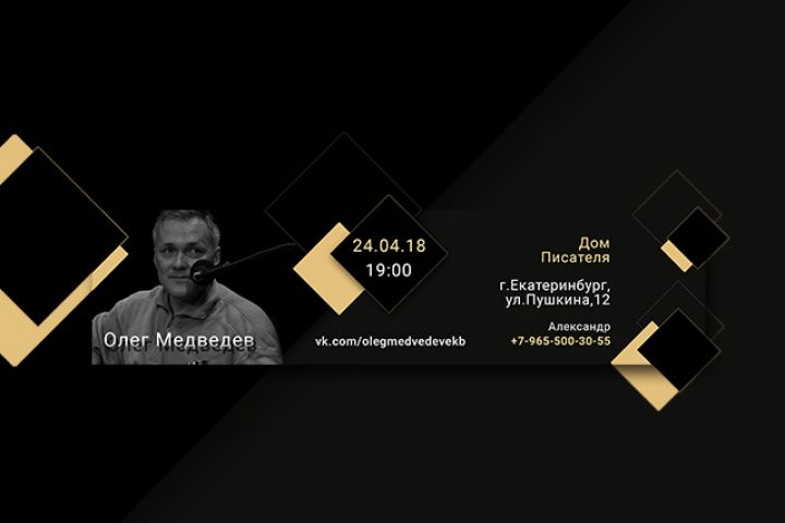 Обложка для ВК по случаю концерта современного барда Олега Медведева.