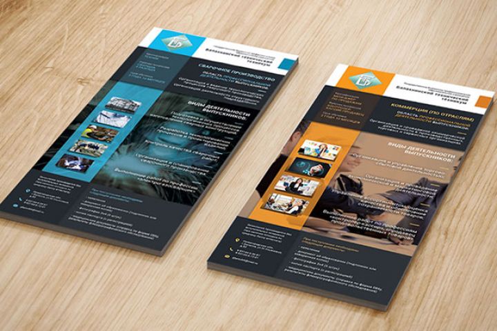 Листовки для БТТ (Балахнинский технический техникум) Задача была поставлена такая: сделать привлекательный дизайн флаеров 6 специальностей для техникума г.Балахна.
