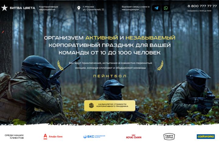 Сайт организатора корпоративных праздников, фото фона сгенерировано нейросетью.