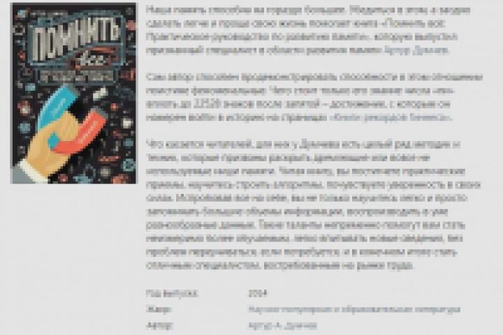Описание (копирайт) книги "Помнить всё: Практическое руководство по развитию памяти" + публикация на сайте