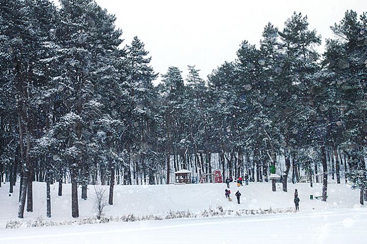 Зимний парк с красивым небом