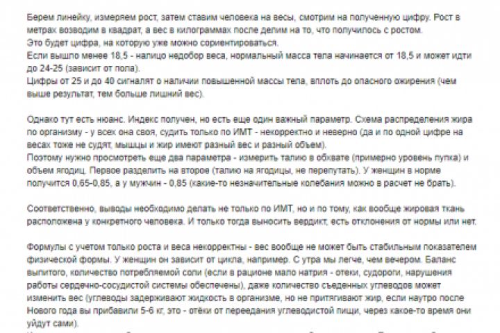 Небольшое задание по ТЗ, для редактора приложения Welltory - текст про определение ИМТ у разных людей.