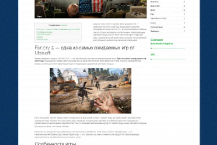 Статья-обзор компьютерной игры Far Cry 5, перед её выходом. Текст с использованием ключевых слов, подзаголовков и других элементов, в соответствии с поставленным ТЗ. Статья опубликована на сайте "Вокруг нас" (vokrug-nas.ru) в 2018 году.