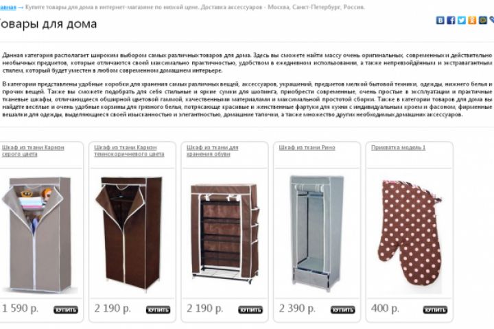 Текст описания категории товаров (товары для дома) в интернет-магазине VAFLI.RU