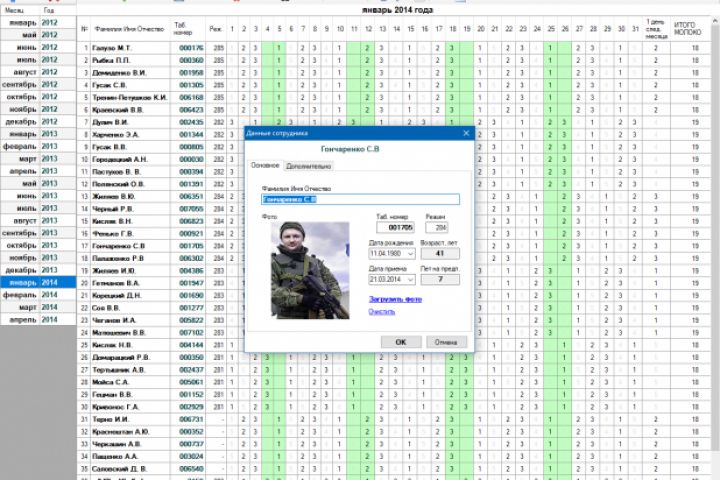 Небольшая специализированная программа учета сотрудников предприятия и их рабочих смен. Предусматривает возможность передачи данных в Microsoft Excel. Системные требования: Windows XP / Vista / 7 / 8 / 8.1 / 10