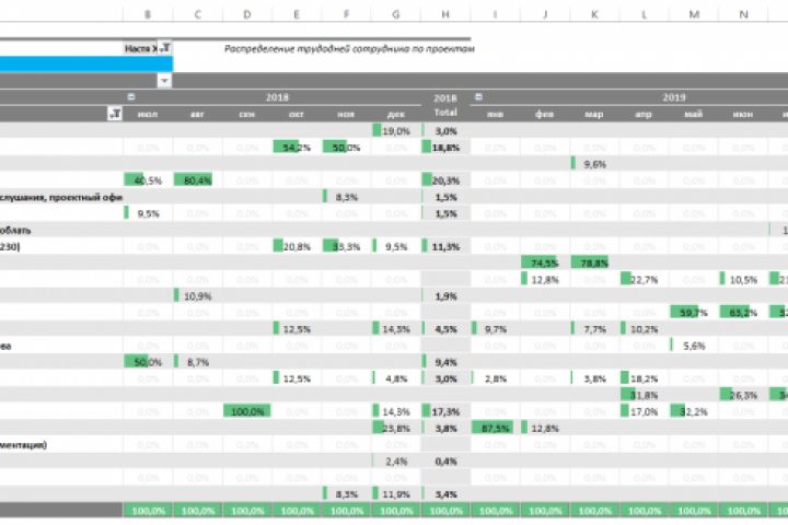 Для анализа продуктивности и загрузки сотрудников по проектам была создана удобная форма в Excel с отчетами.