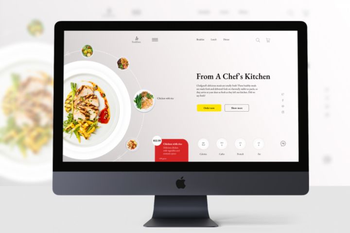 Сайт доставки еды. На главной странице можно выбрать блюдо посмотреть его КБЖУ Далее клиент переходит в раздел "больше" или оформляет заказ