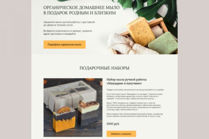 Дизайн одностраничного сайта интернет-магазина мыла ручной работы.