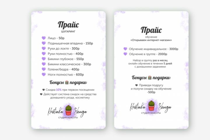Баннеры прайса на услуги для Instagram-аккаунта мастера SPA-шугаринга