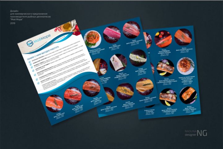 Дизайн для коммерческого предложения производителя рыбных деликатесов Моё Море