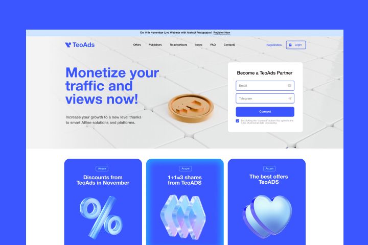 Проектирование, дизайн и разработка сайта для компании партнерских программ TeoADS.