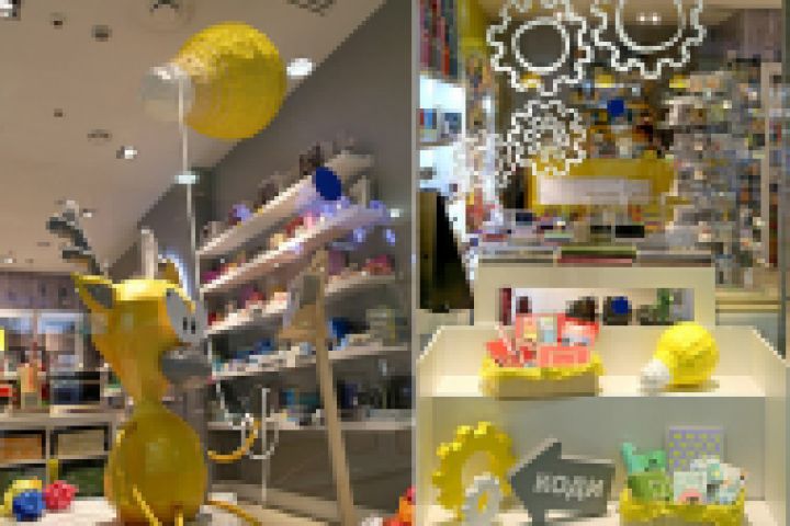 Кукла Лося Коди в ТРЦ Европейский, а так же лампочка и шестеренки - ручная работа: изначально 3D-модель, в последствии - фигура из плотного картона.