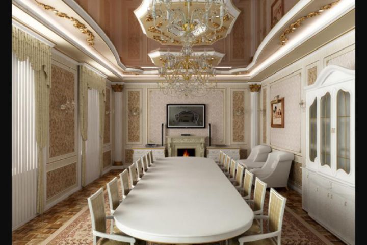Интерьер гостиной-столовой в классическом стиле частного жилого дома