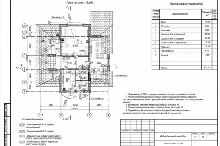 План на отм. 0.000 многоэтажного жилого дома (стадия РП)