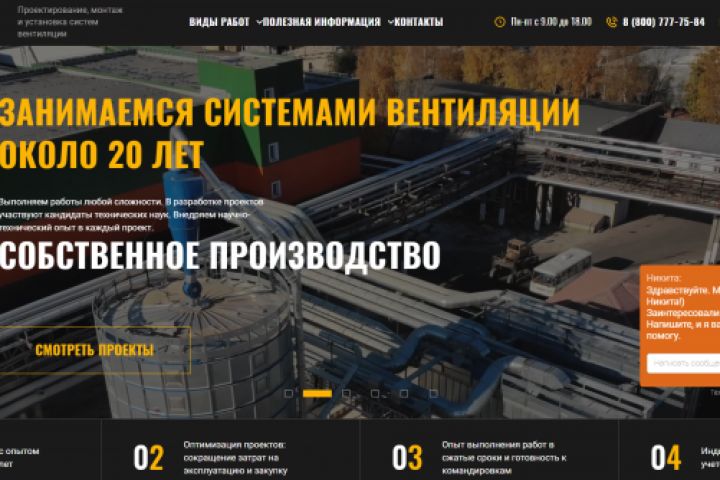 Было дано тз - оптимизировать сайт, ориентируясь на крупных конкурентов (поднять статусность) сделать более привлекательным, чтобы пользователь дольше задерживался, оставлял больше заявок. Решение: сделала фоновое видео (с объекта работ) на сайт, чтобы добавить динамику и "приковать" взгляд пользователя, также это дополнительная информация о том, чем занимается компания, какова ее деятельность и направленность; заголовки (утп) в цвет фирмы; вынесла калькулятор на главную страницу, чтобы пользователь сразу мог прикинуть стоимость работ; на каждом слайдере добавила кнопку "посмотреть проекты", показывая тем самым, что мы не новички в своем деле, и у нас есть примеры реализованных проектов.