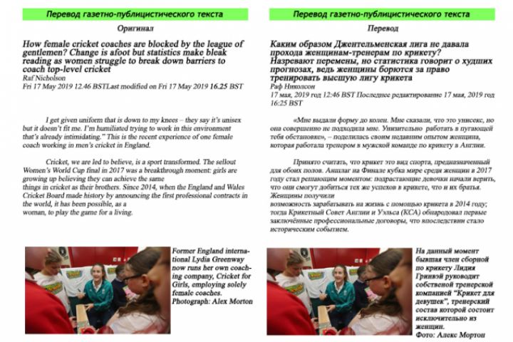 Пример перевода газетно-публицистического текста