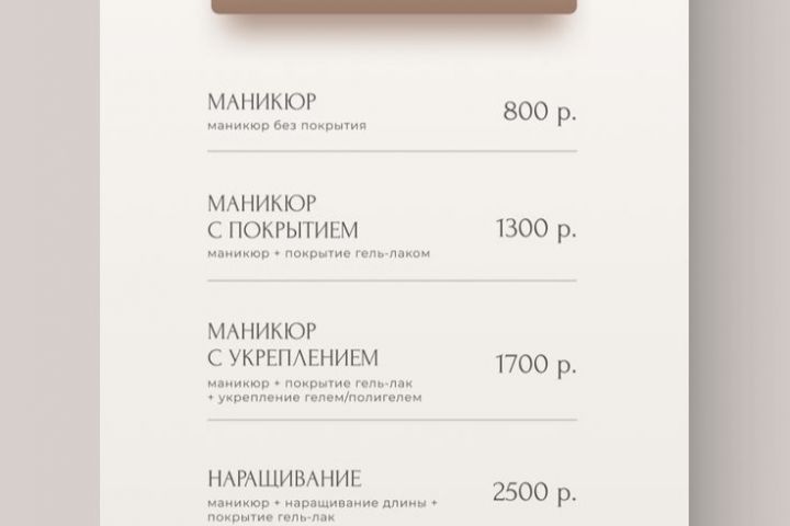 Разработка дизайна прайс-листа для бьюти студии специализированной на маникюре