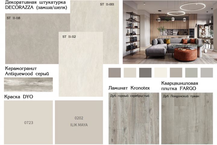 Подборка материалов для отделки квартиры евро-формата в стиле "Контемпорари"