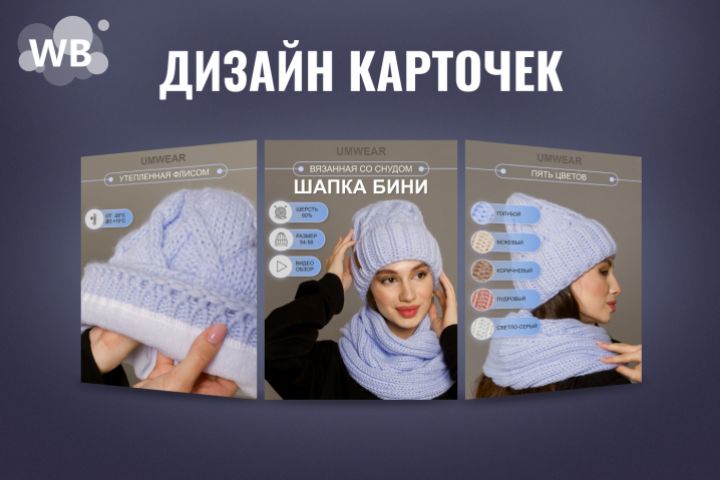 Дизайн карточек товаров для Маркетплейсов. Шапка Бенни.