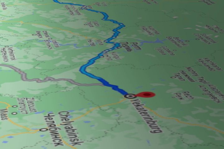Анимация пути на Карте Екатеринбург - Санкт-Петербург с движением камеры