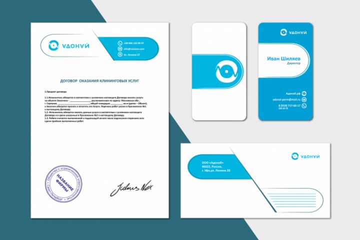 ЛОГОТИП И ФИРМЕННЫЙ СТИЛЬ АДОНАЙ Задача: Разработать логотип, фирменный стиль и брендбук для клининговой компании. Решение: дизайн использовался перевернутый, значок за основу взят знак кругооборота. Под логотип был подобран фирменный элемент