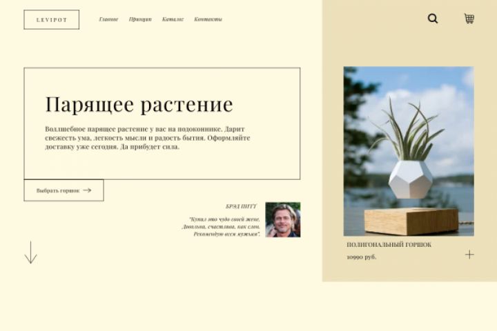 Дизайн сайта с левитирующими горшками.