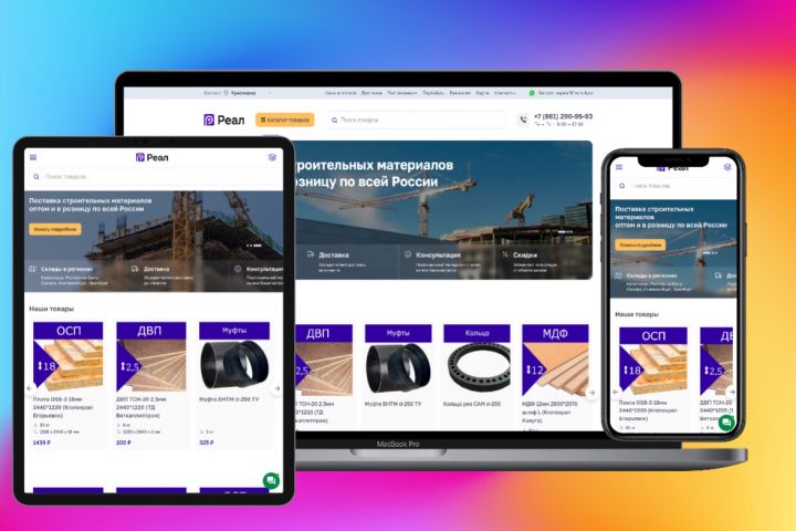Проект по созданию сайта для компании "Реал ГК", специализирующейся на продаже строительных материалов. Основной задачей было разработать функциональный и привлекательный каталог, который бы обеспечивал удобное взаимодействие с клиентами и увеличивал объемы продаж.