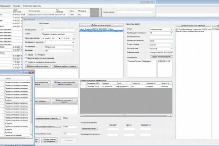 Программа по ведению заказа бюро переводов, статистика, отчеты.