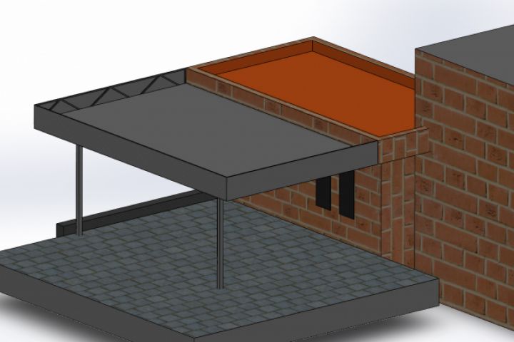 Разработка металлических навесов с внутренней плоской и наружной крышей