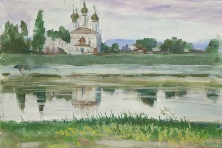 гуашь/50х70/быстрый набросок, Великий Устюг, р. Сухана