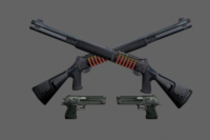 Дробовик Benelly и пистолет Desert Eagle для игры на мобильных устройствах. Дробовик 774 треугольника вместе с патронами, пистолет 384 треугольника.
