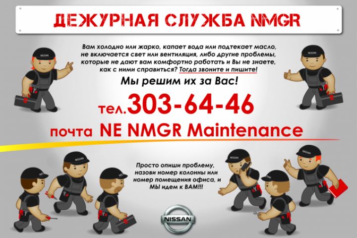 Разработка персонажей и дизайн плаката для завода Ниссан Мэнуфэкчуринг Рус.