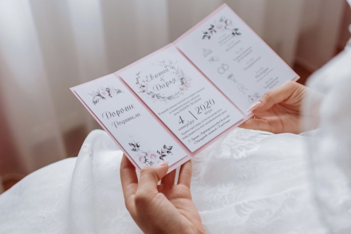 Дизайн складного пригласительного для свадьбы. Работа выполнена в пудровых оттенках, которые являются стилистической особенностью торжества заказчиков.