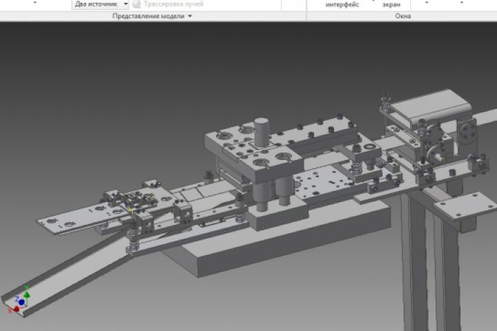 Комплекс изготовлен и работает на предприятии заказчика более 2 лет. Предназначен для изготовления полосы, для строительного инструмента. В состав комплекса входят: протяжной механизм, штамп пробивной, штамп обрубной. механизм сброса.
